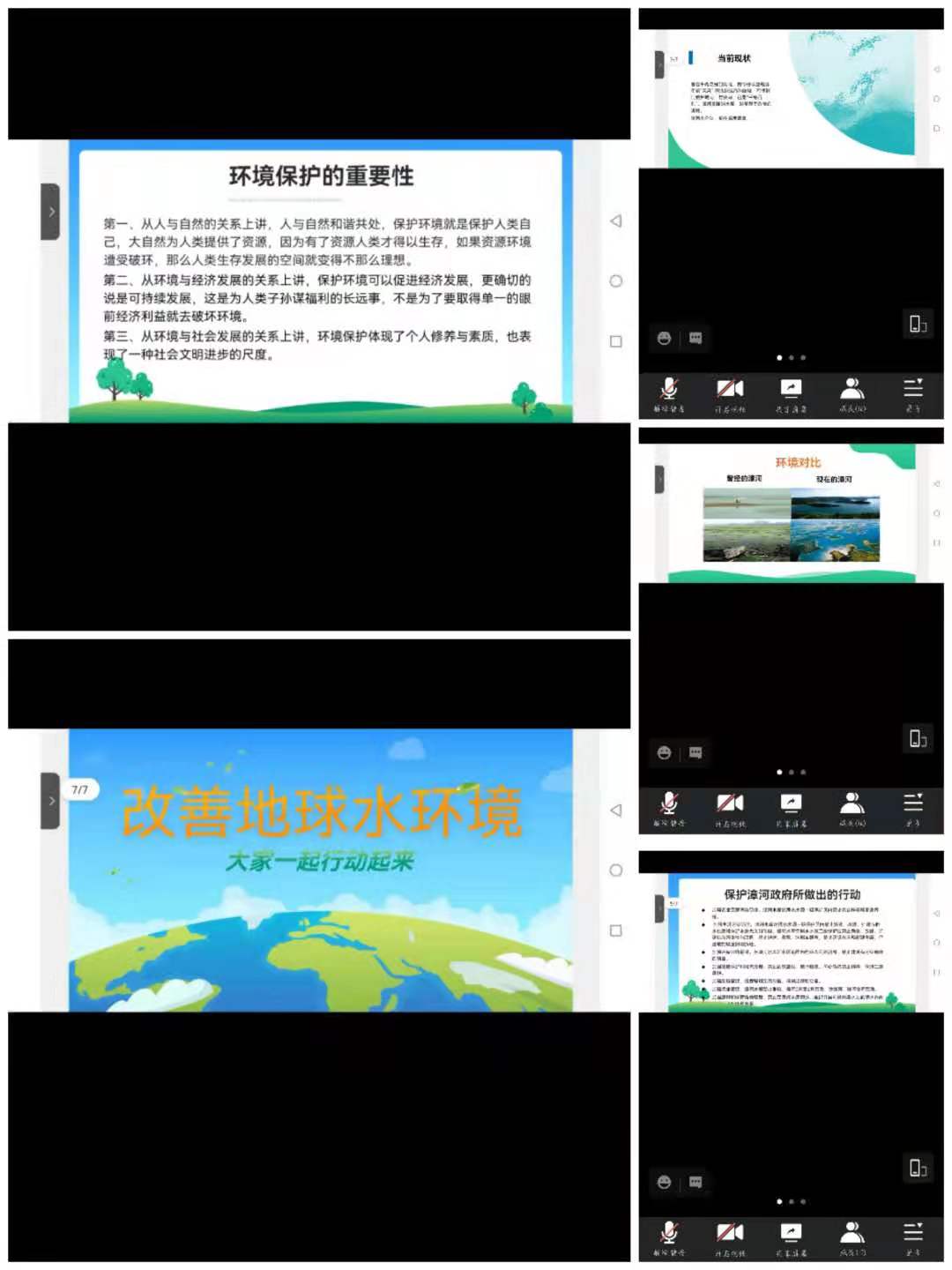 由于受到湖北省荆门市疫情的影响,实践团决定由线下实地保护漳河活动转为线上活动。活动前期,小组各成员在网上查阅了漳河以前的污染程度和现在的变化以及政府为改善河流状况所做的行动。之后,小组在网上宣传了此次“云保护”漳河线上活动,邀请了不同年龄段的群体来聆听本次讲座。本次线上讲座主要围绕保护水资源的重要性以及行动展开。会议期间小组成员分别向观众讲述了漳河的历史,水资源保护行动的开展和政府为改善水资源所采取的措施。观众群体积极参与并且踊跃提问发言,活动取得了圆满成功。
