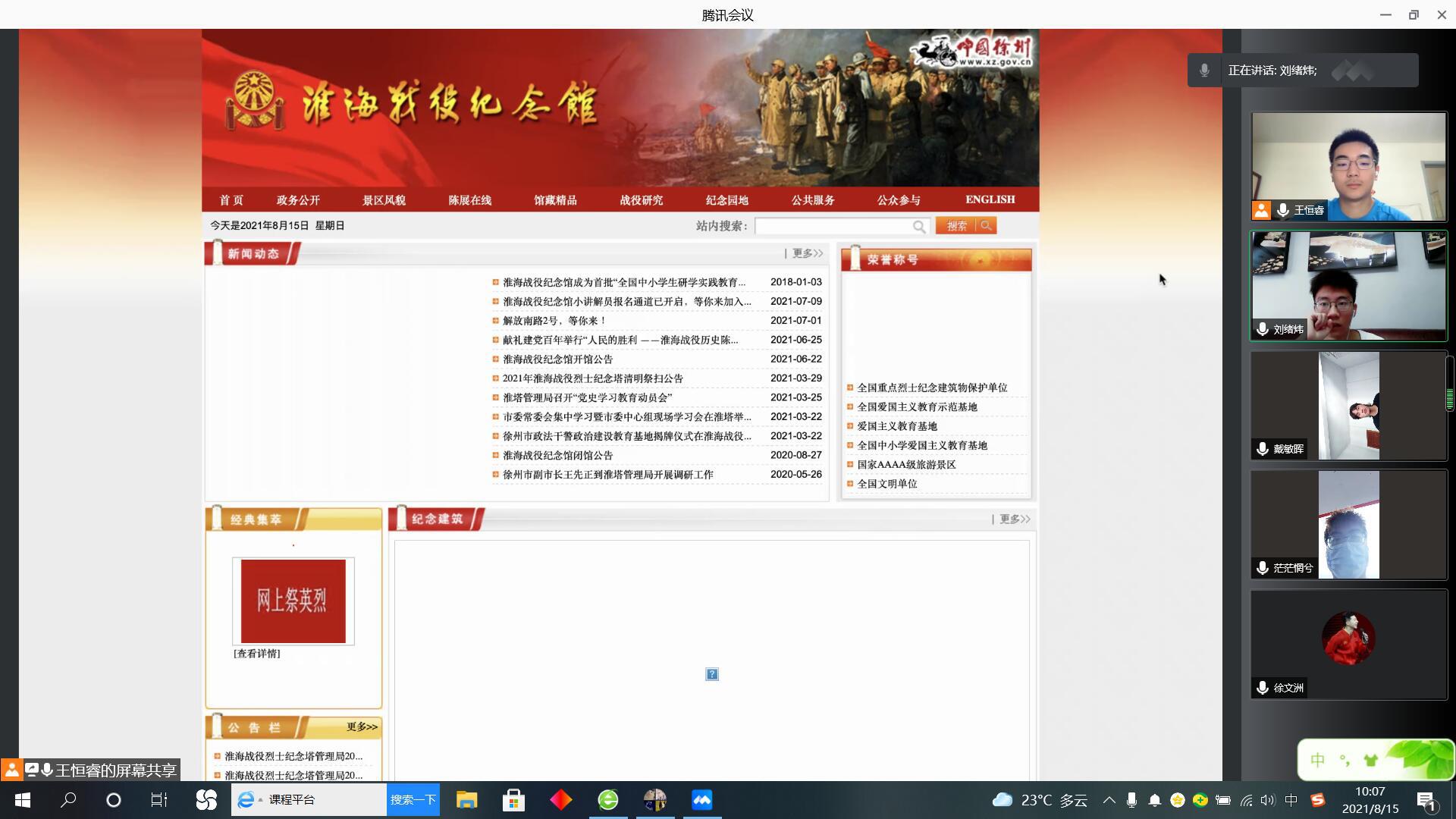 活动伊始,各成员均利用自己的空余时间对淮海战役这一历史事件有了一定的了解,并发表了自己的见解。上午10时,实践团全体成员通过线上腾讯会议展开了热烈的讨论,成员们从解放军取胜的原因、当地的地理环境等角度分析了淮海战役的意义,同时在讨论中不断丰富和提高自己原本的认识。随后实践团成员通过屏幕共享功能一同进入淮海战役纪念馆官网,线上参观了淮海战役纪念馆临时展厅和新纪念馆,并阅览了淮海战役期间珍贵的图片资料。成员们震撼于革命先辈们在解放战争中坚定的意志,也深深感受到了人民群众的力量。最后,实践团成员们进入网上祭奠页面,向参与淮海战役的革命先辈们献上虚拟鲜花和蜡烛,表达了对他们的崇高的敬意。