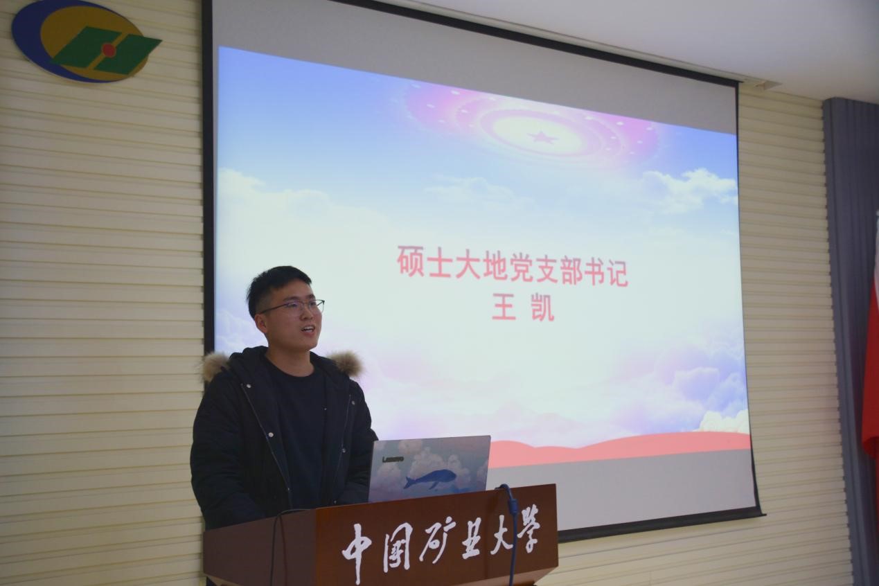 随后,硕士大地党支部书记王凯同志带领大家观看“专访丁仲礼院士谈‘碳中和’”视频,提醒同学们在开展科研的同时也要关注时事政治,把个人梦和中国梦结合起来。博士第一党支部书记田毅同志从工作、学习、生活三个方面,生动地为同学们进行了经验分享,他提醒同学们要做好科研与工作规划,在平时的生活工作中勇于尝试、提升自己。