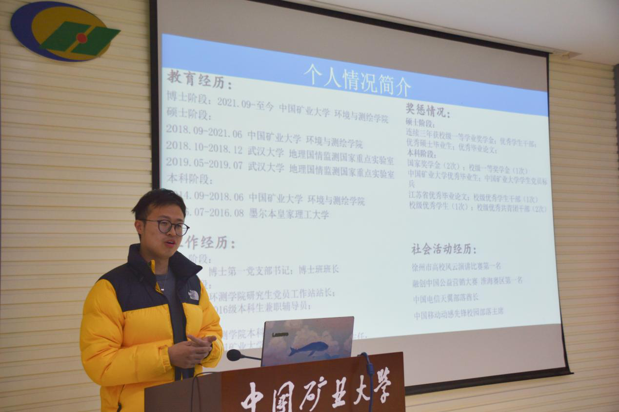随后,硕士大地党支部书记王凯同志带领大家观看“专访丁仲礼院士谈‘碳中和’”视频,提醒同学们在开展科研的同时也要关注时事政治,把个人梦和中国梦结合起来。博士第一党支部书记田毅同志从工作、学习、生活三个方面,生动地为同学们进行了经验分享,他提醒同学们要做好科研与工作规划,在平时的生活工作中勇于尝试、提升自己。