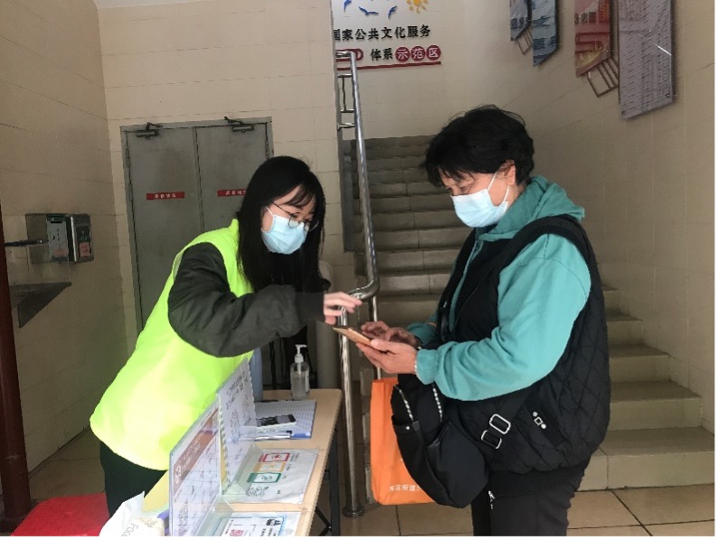活动期间,屈香君报名担任了彩虹社区学习强国学习平台互动分享空间的服务志愿者,在社区中负责疫情检查,对进出人员进行健康码、行程码查验,并提醒外来人员进行信息登记。与此同时屈香君还在社区文化活动中心帮助整理图书,认真践行志愿者服务精神,展现青春风貌。