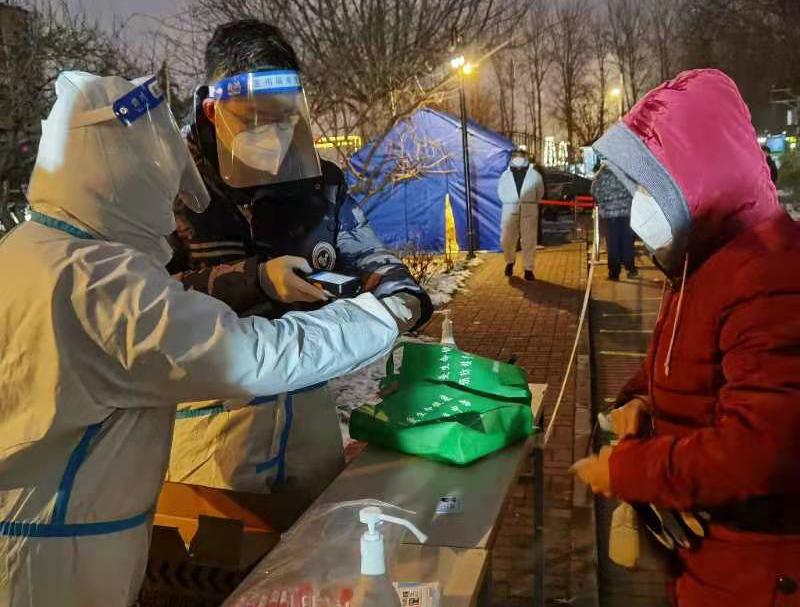 准备期间,赵寄童同学接受了专业人员的培训,了解并掌握了核酸检测的相关流程。活动期间,赵寄童佩戴好防护用具,认真按照要求对社区居民进行身份扫码,积极引导进行核酸检测,并向他们讲解了疫情期间核酸检测的重要性和必要性。大部分居民也都按要求佩戴好口罩,保持安全距离,积极进行核酸检测,这很大程度上提升了工作人员的效率。赵寄童表示,大多数居民都积极配合疫情防控工作,他们认为参与核酸检测能够清楚掌握自身健康状况,并且可以帮助社区排查疫情的传播途径,控制现阶段疫情蔓延态势。