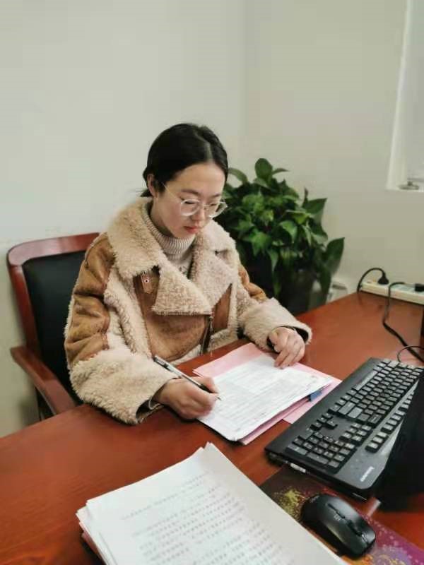 学子高媛媛于2月14日在江苏省徐州市新沂市教育局开展政务实习活动。