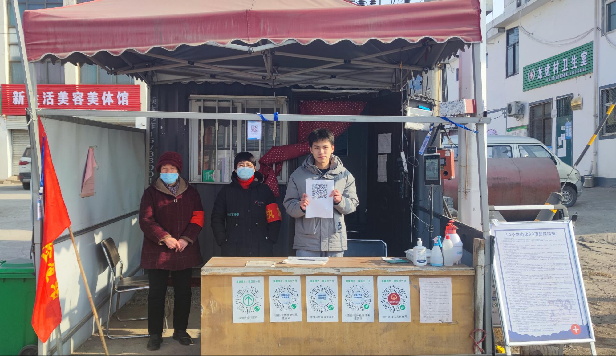 学子王佳旭于河北邯郸涉县龙虎乡龙虎村参与疫情防控路口登记活动,并独立开发了微信小程序帮助提高路口登记效率。
