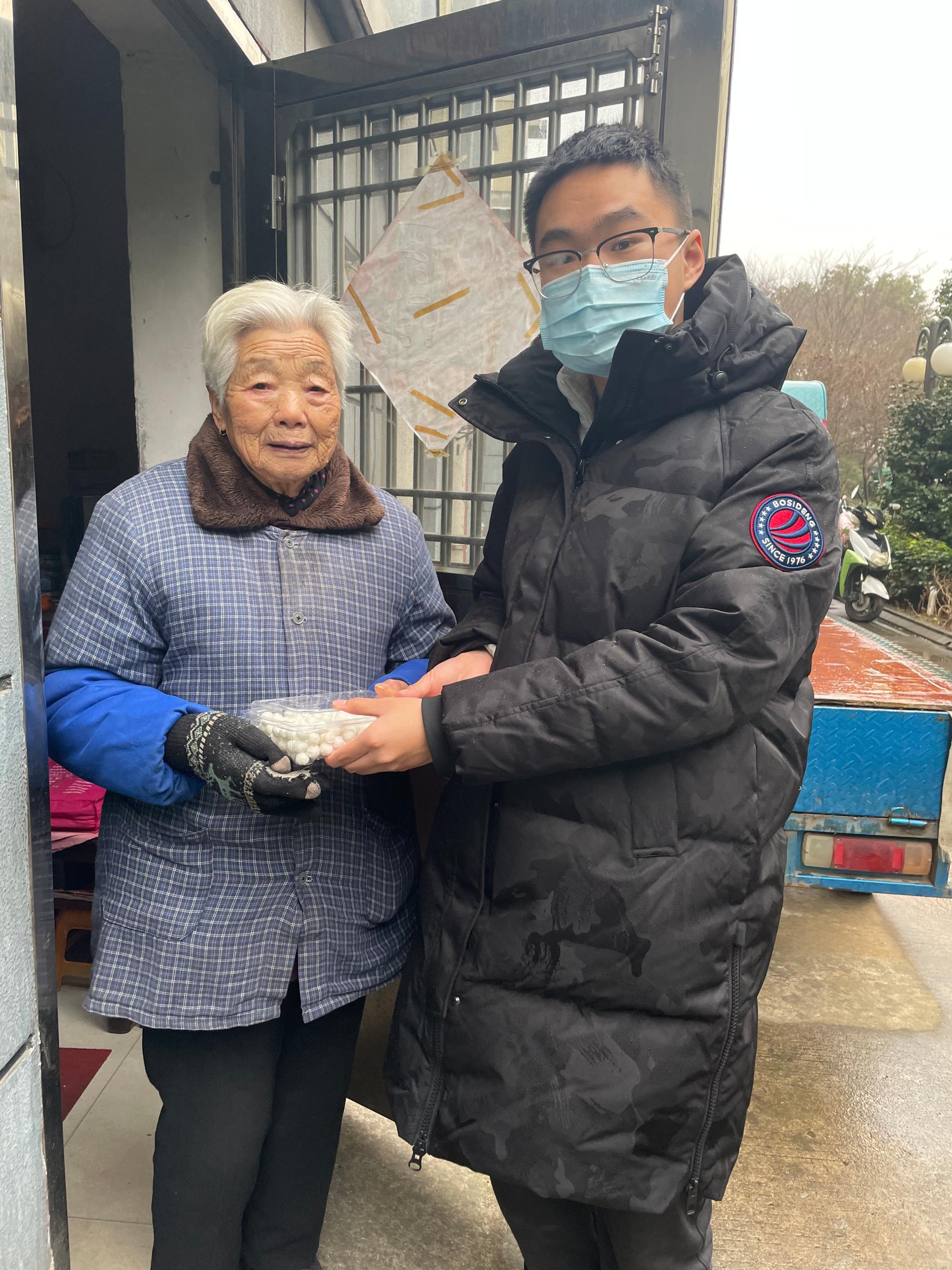 李奕辰为社区老人送爱心元宵