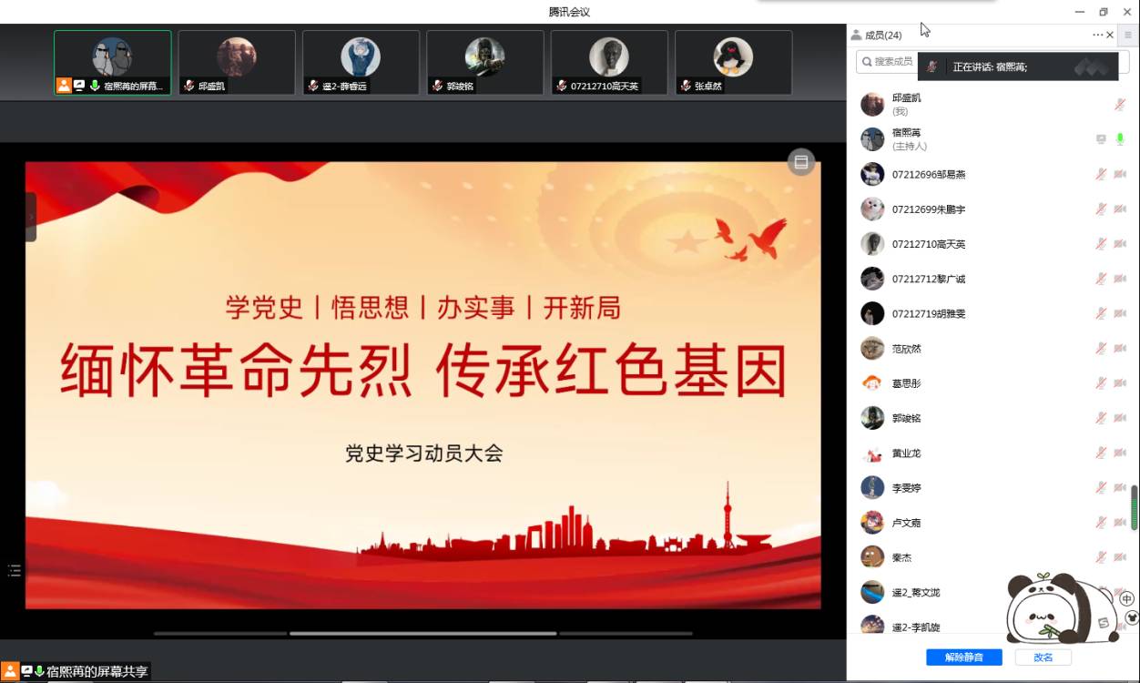 7月25日晚,遥感21-2班同学于腾讯会议上召开社会实践线上动员大会,提醒同学们要严格遵守当地疫情防控要求及相关出行要求,安全、合理的开展实践活动。同时提议同学们通过多方式多渠道了解党史,学习党史。