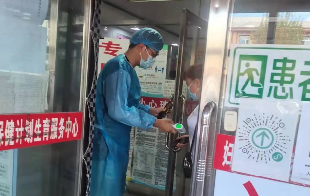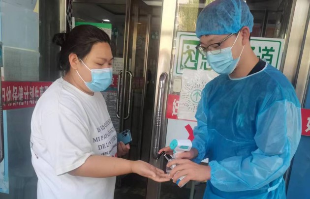 张文瀚同学为患者测温现场