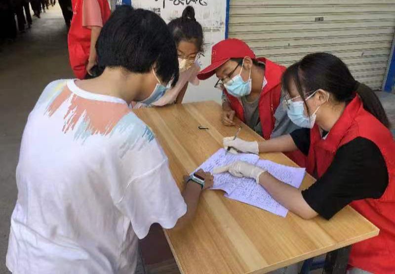学子王钰与两名来自其他高校的大学生志愿者参加了由当地政府领导、社区统一组织的防疫志愿服务活动。