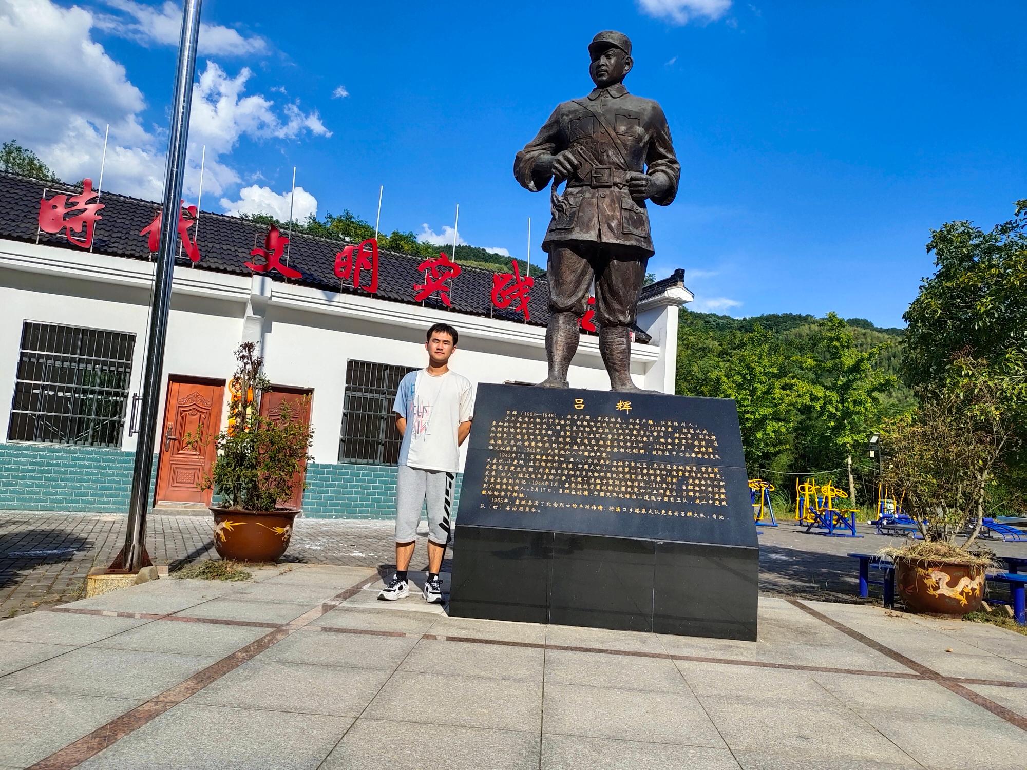 吕辉村位于溪口镇南部,是革命先烈吕辉同志生前工作和战斗过的热土。吕辉烈士铜像矗立于村部广场,年轻的英雄注视着巍巍青山,似乎在向我们讲述着那段英勇奋斗的光辉历史。活动期间,在讲解员的引导下,郑旭东同学怀着崇敬的心情参观了吕辉纪念馆内陈列的史料史迹。陈列的每一件实物,都生动展示着革命先烈艰苦奋斗的场景;展示的每一幅图片,都形象再现了共产党人不畏牺牲的壮举。在吕辉同志的带领下,游击队多次粉碎了国民党顽固派的军事“清剿”,不断壮大游击队伍,建立了以宁国板桥为中心的泾、旌、宁、宣游击根据地。青山处处埋忠骨,新中国成立后,溪口人民为纪念吕辉同志,将他曾居住和战斗过的塔泉村改为吕辉村