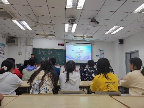 测绘类22-3团支部在博四C306开展“请党放心,强国有我”主题团日活动