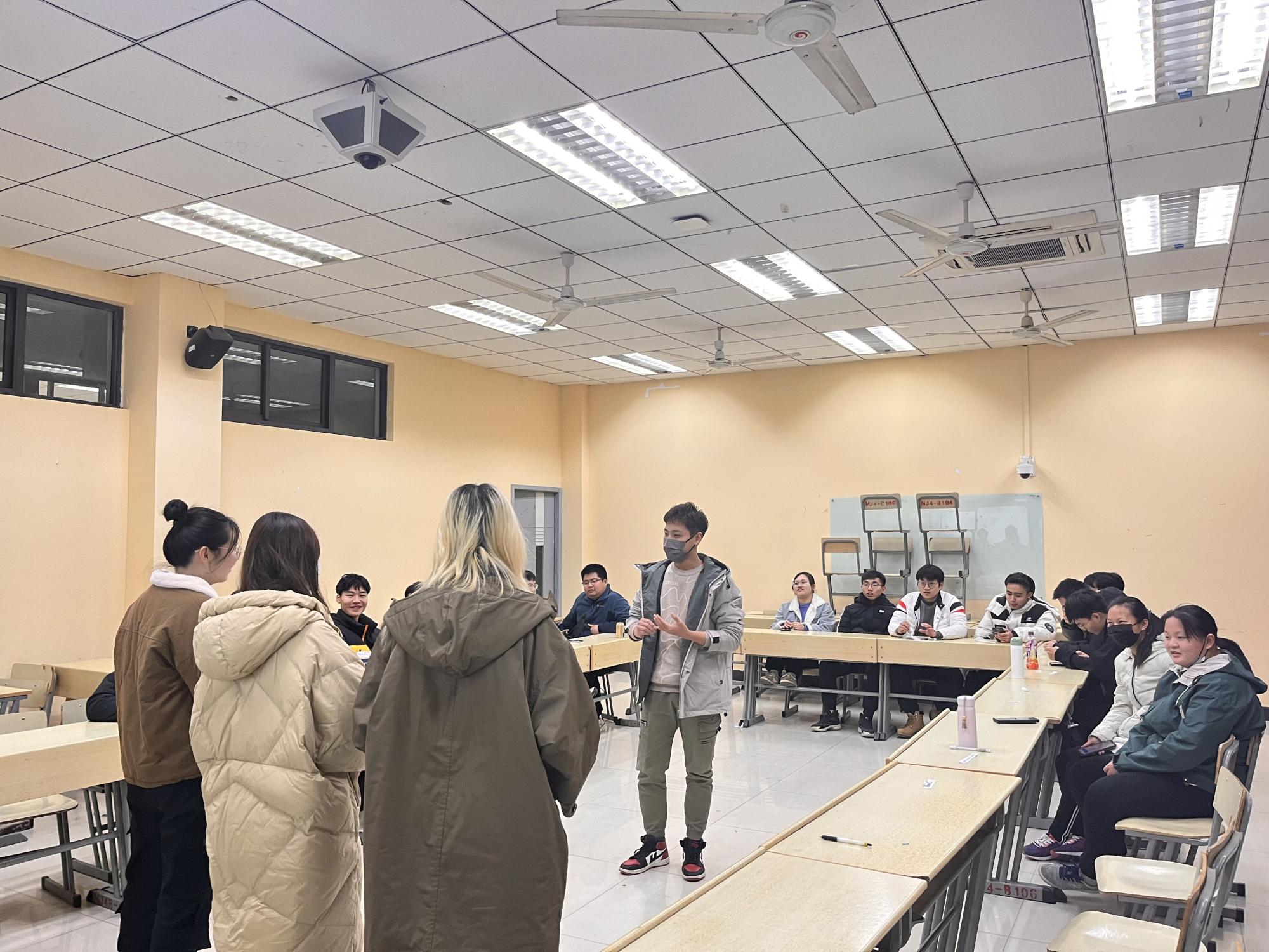 接着,联系所学的二十大报告内容,团支书给每个人发了小纸条。纸条上或是党的二十大的的相关问题、或是与问题对应的相关答案。同学们根据拿到的纸条内容组成一队。在组队的过程中,同学们也加深了对二十大报告的印象。