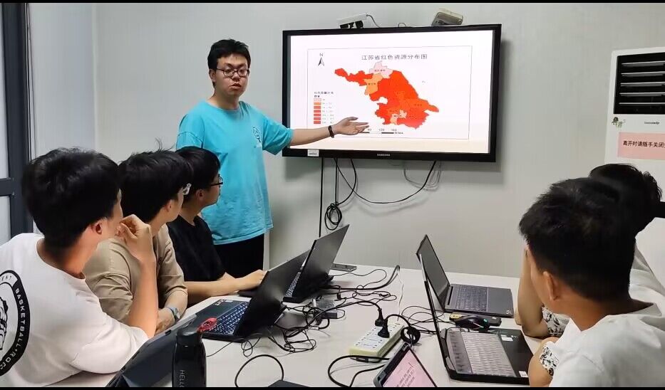 在实践期间,陈樟杰、易乐、那浩宇三位同学与团队成员分享地图制图经验,为地图制作奠定了扎实的理论基础。实践团结合前期线下参观淮海战役纪念馆获取的资料及线上网络资源,并深度学习淮海战役史实,将历史故事与地图制作技巧结合,通过Online Geoscene平台完成了交互式地图的制作。交互式红旅地图作为后续地图宣讲活动的重要媒介,以地图故事网站为展示平台,实践团也将通过这份红旅地图向观众传达这段历史的重大意义与淮海战役背后的伟大精神。