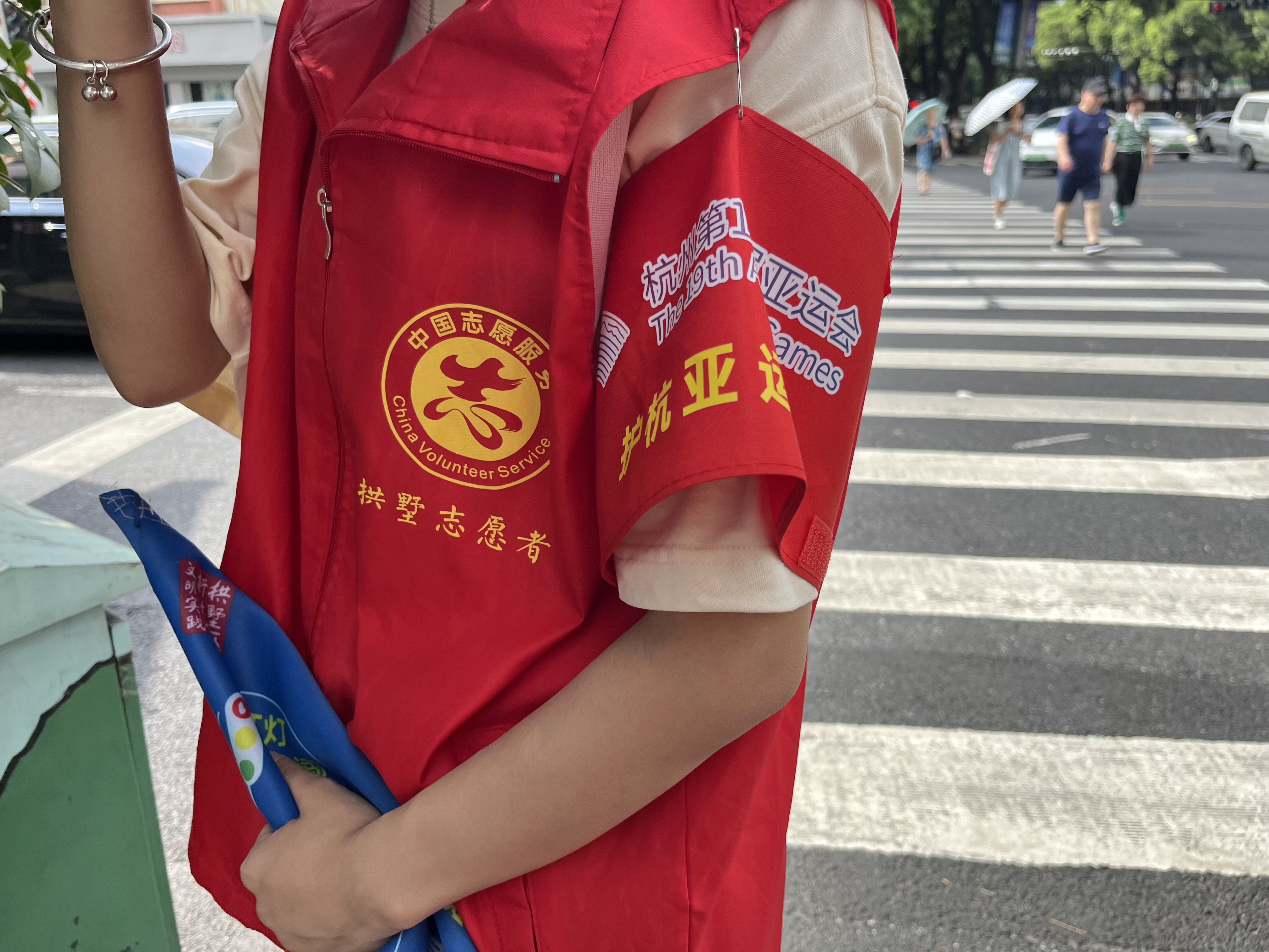 何星如同学于8月2号于浙江省杭州市沈塘桥社区参与“全民亚运”文明劝导活动,志愿活动主要内容是交通引导,维护良好交通秩序。