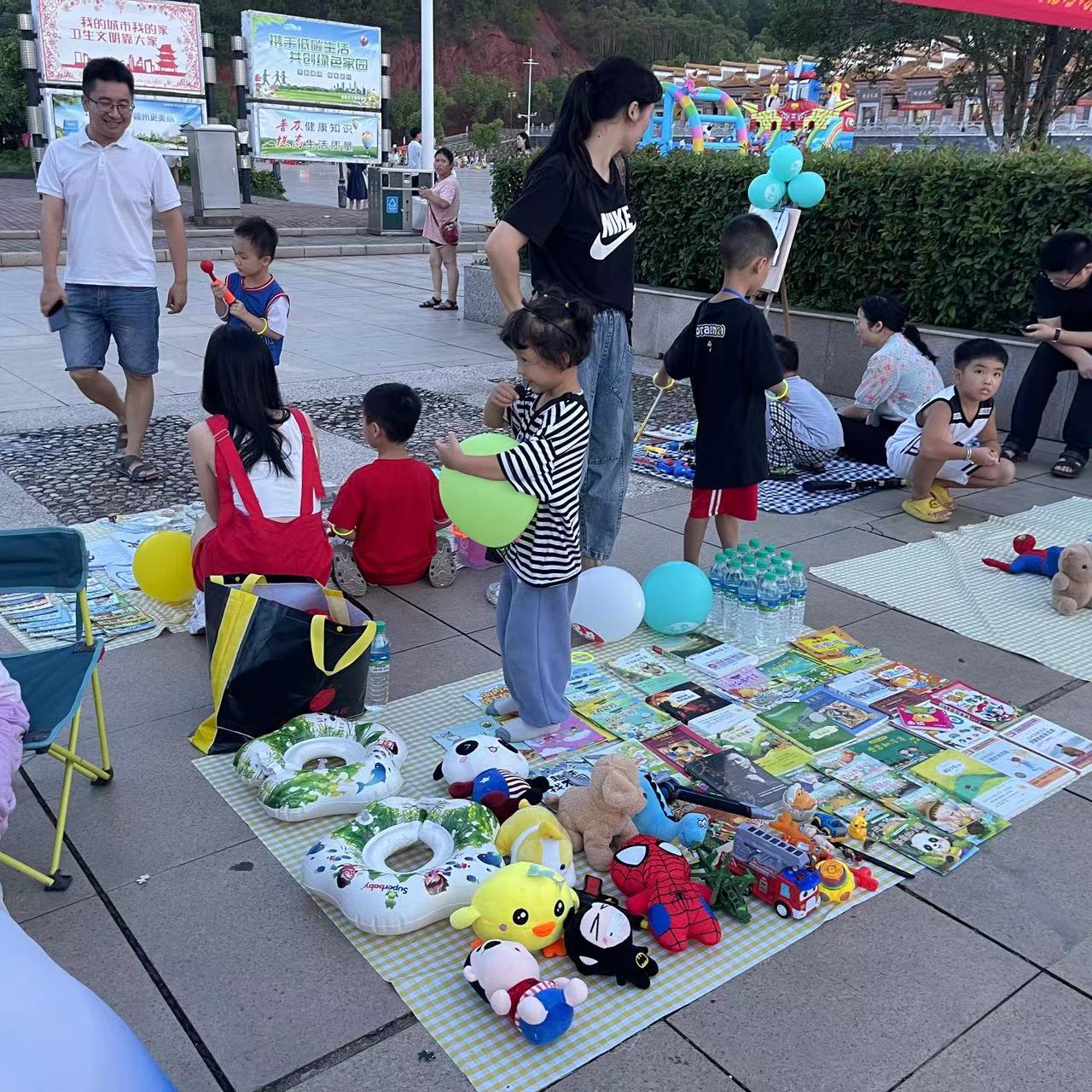 学子郑芳鸿同学为代表的大学生志愿者,在其家乡南山广场开展了一次义卖活动。