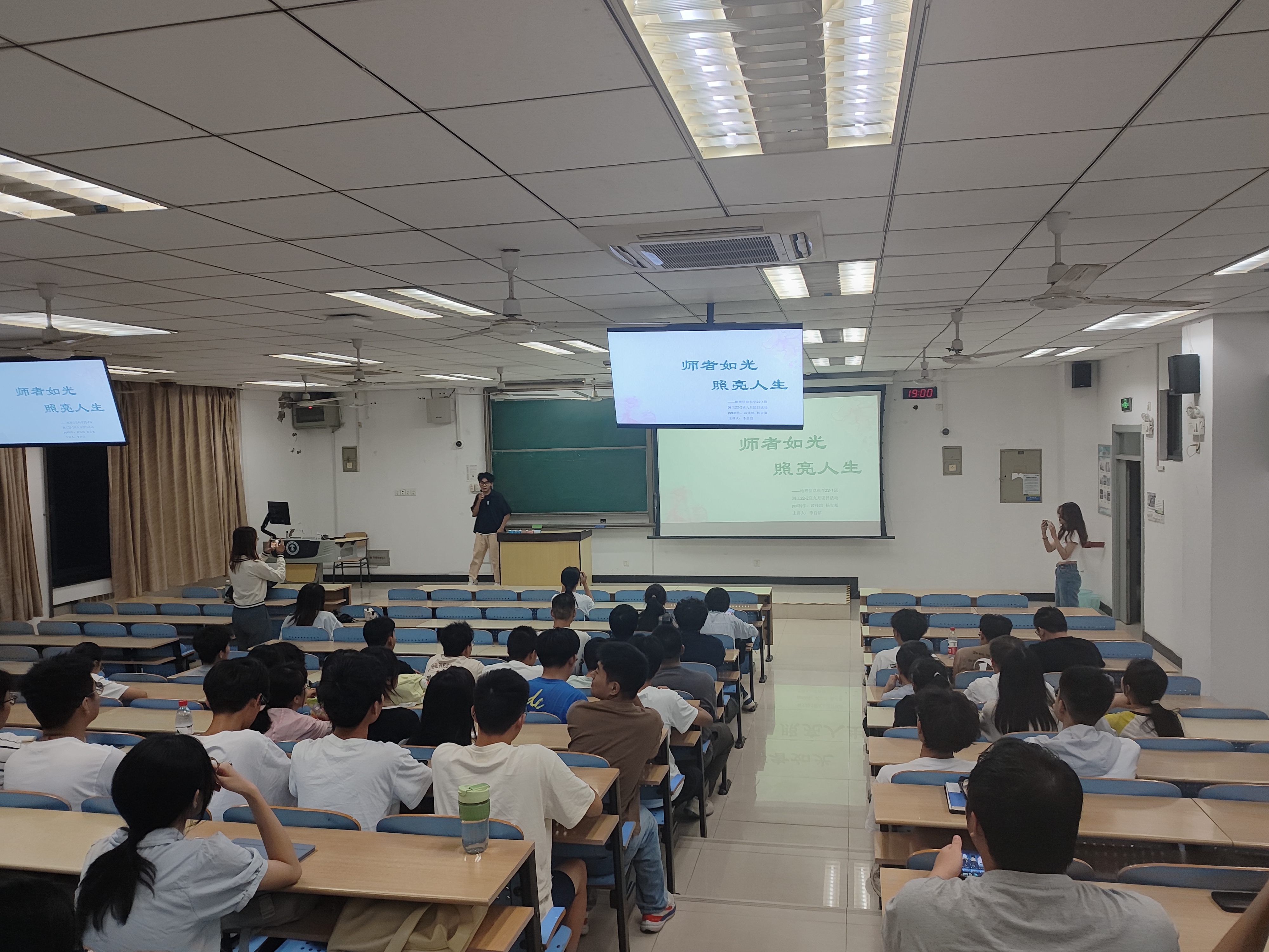 在本次活动开始,由地信一班李自信同学引出了本次团日活动的主题“师者如光,照亮人生”,然后简单介绍了教师节与一些感人的教师事例,在讲解过后,他通过一个视频介绍张桂梅校长的事例,加深了我们对她乃至整个教师这一职业的认识。在视频之后,他介绍了一些教师节的名人事迹,加深了我们对教师节的印象与认识。最后,他总结了教师节的重要性,和教师为孩子们所做出的重要作用,并表明了自己也有当教师的心意。