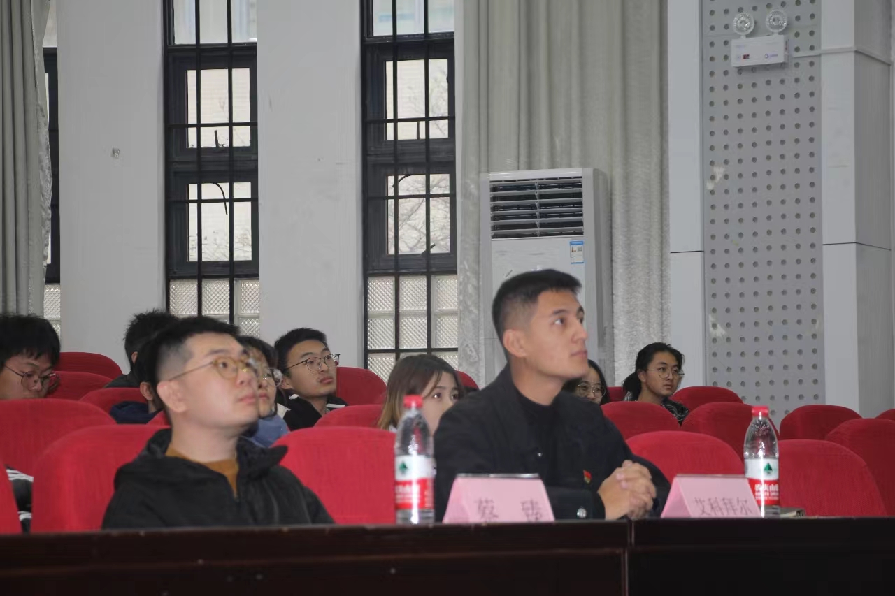 B109报告厅举行。学院2022级辅导员老师蔡臻、2023级辅导员老师艾科拜尔出席本次活动。第十二期青马班全体学员、第十三期青马班部分学员参加仪式,院党员工作站组织和主持。