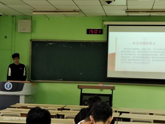 此次活动分为三部分,第一部分是“社会实践活动分享”,刘昌泰宇同学给大家分享了贯彻落实党的二十大精神,学习实践科学发展观的社会实践活动,引人入胜。第二部分是“社会实践活动tips”,刘昌泰宇同学给大家介绍了社会实践活动的内容及相关要求,为同学们后期社会实践活动进行指导。第三部分是“暑假生活分享”,李涛同学分享了他暑期参加支教活动的感受。