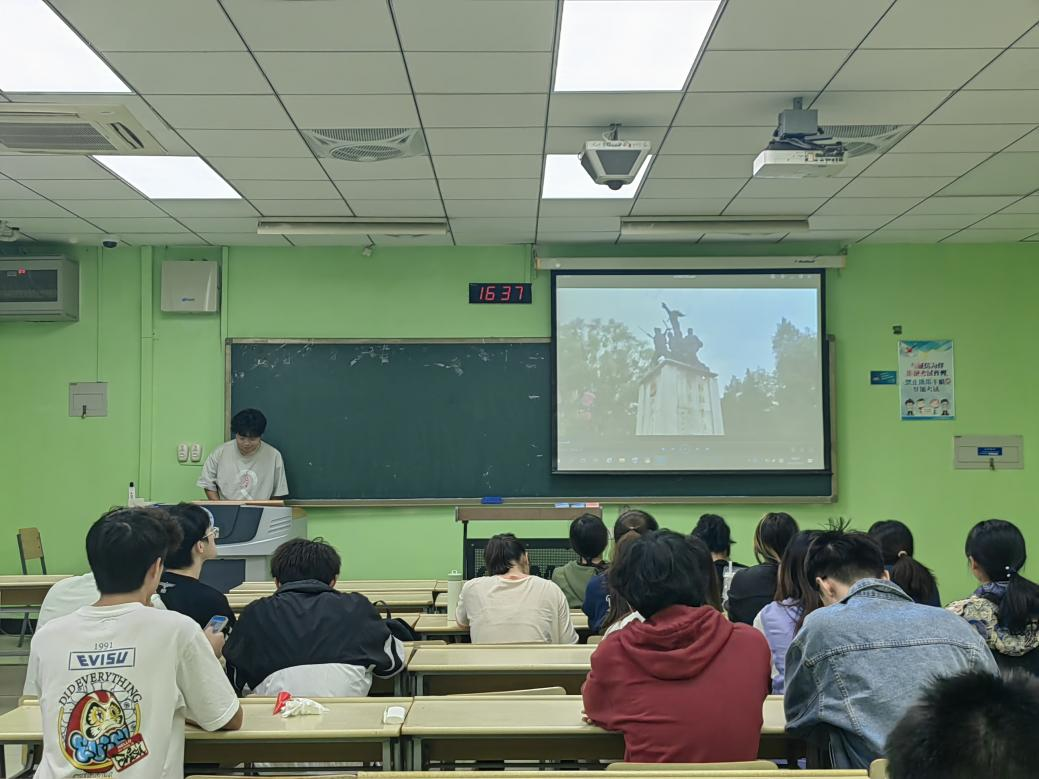 本次活动以引导青年学生在实践中受教育、长才干、做贡献,增强学生的社会和历史责任感为目的。首先,由刘培剑同学分享自己暑假期间在矿大附近的望城村进行“彩笔绘乡”社会实践的经历与成果。接下来,张智翔和石钧雷两位同学也相继上台分享了实践经历,张智翔同学在暑假期间运用GIS技术和统计方法,对江苏省红色文化资源的空间分布特征、区域差异和形成因素进行了定量和定性的分析,并将实践成果制作成江苏省红色文化资源地图故事,以此来传承红色精神;石钧雷同学暑假期间去了山西长治和太原两地,先后前往太原文瀛公园、黄坡烈士陵园以及长治八路军太行纪念馆进行参观展览,感悟红色历史。通过三位同学的分享,可以感受到他们在暑假期间均获得了一次意义深刻的体验。最后,由李亚楠同学对本次活动进行总结。