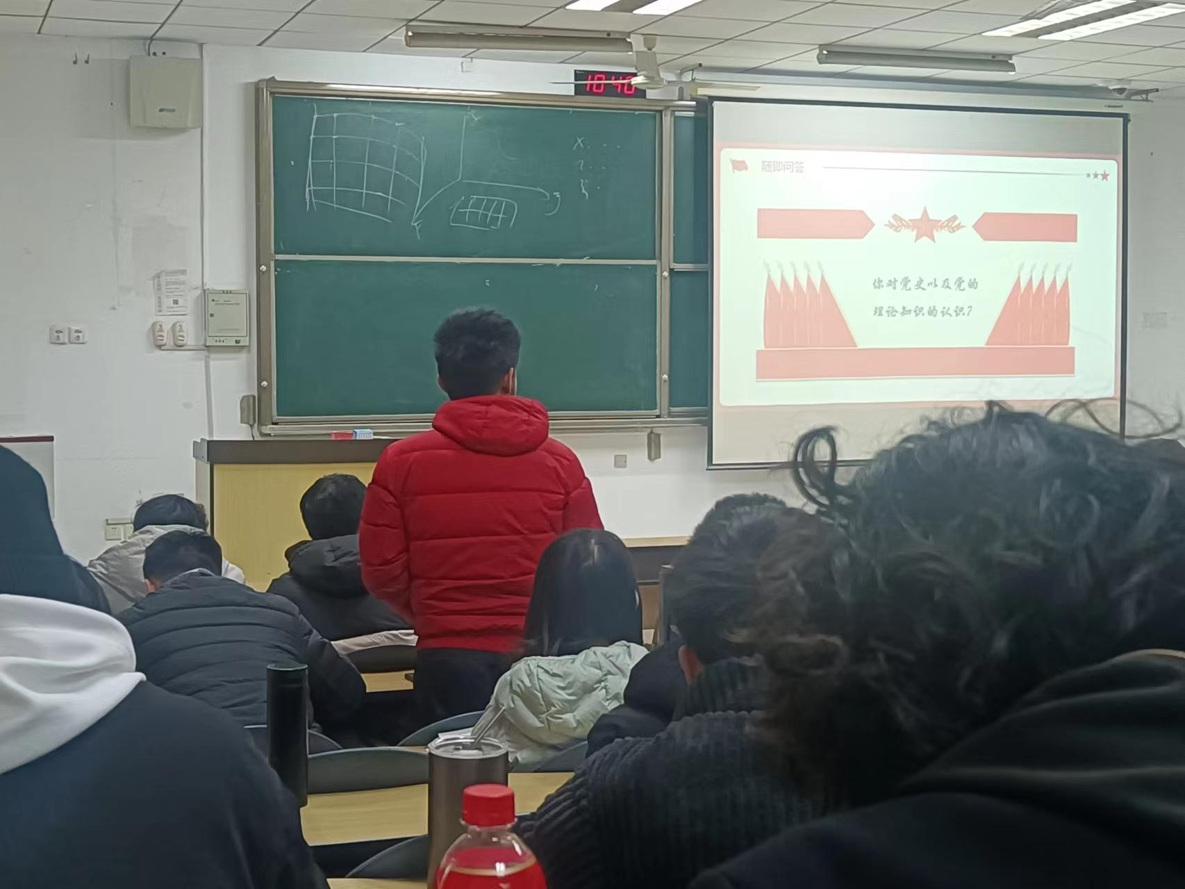 首先,王奥松同学介绍了中国共产党成立的历史背景和意义,接着分别请几位同学谈了谈自己对党的认识;接着谈及党的一些基础知识时,也是随机找取同学进行提问;团日活动的最后,采取视频的方式给同学们展示了中国共产党的发展史以及中国共产党成立以后取得的各项成果,同学们也在此次活动中学到了很多。