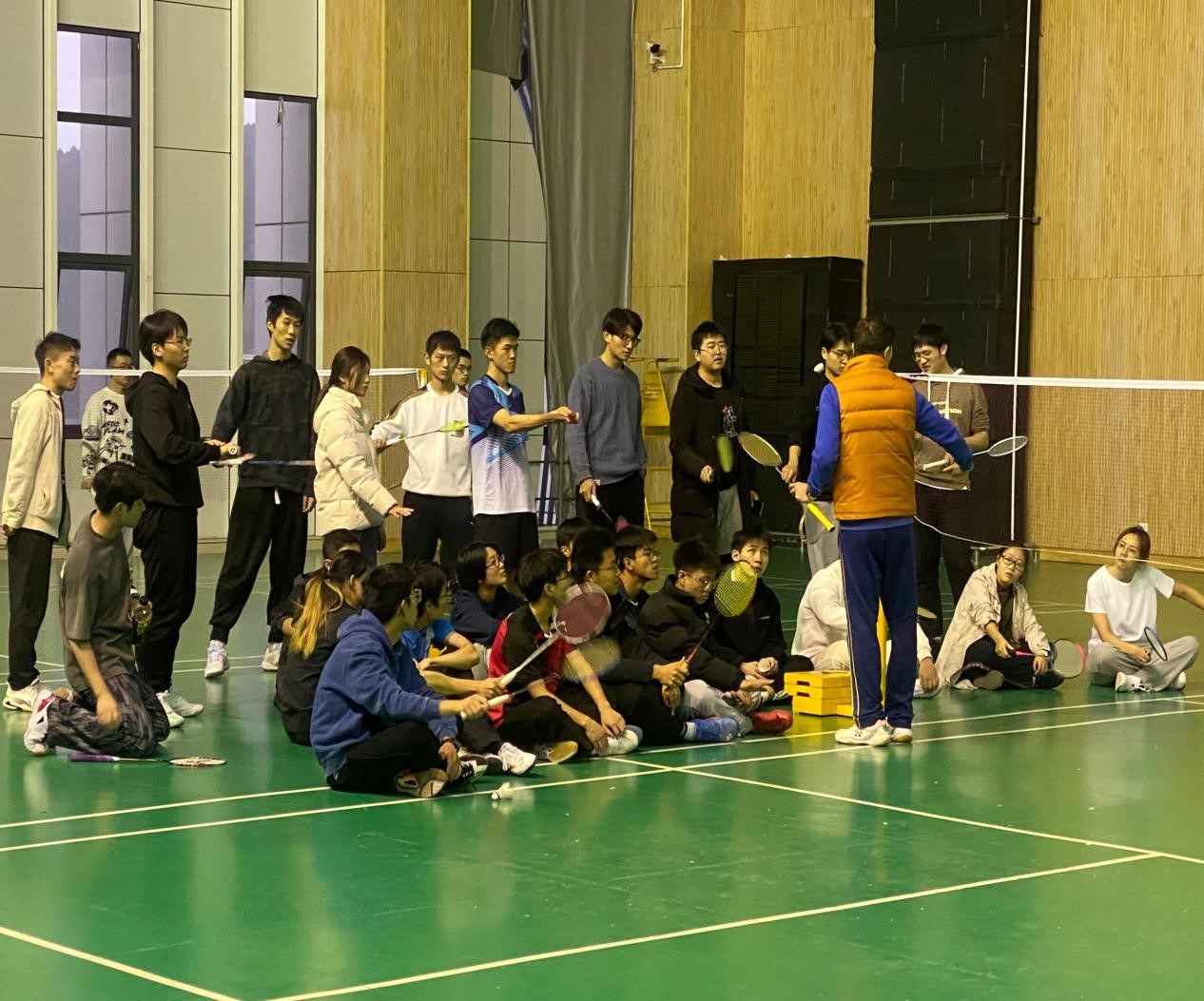 南湖羽毛球馆举办羽毛球知识讲解课。本次课程由育学院戴磊老师主讲,主要讲解了对羽毛球这项运动的理解和对羽毛球拍的使用。