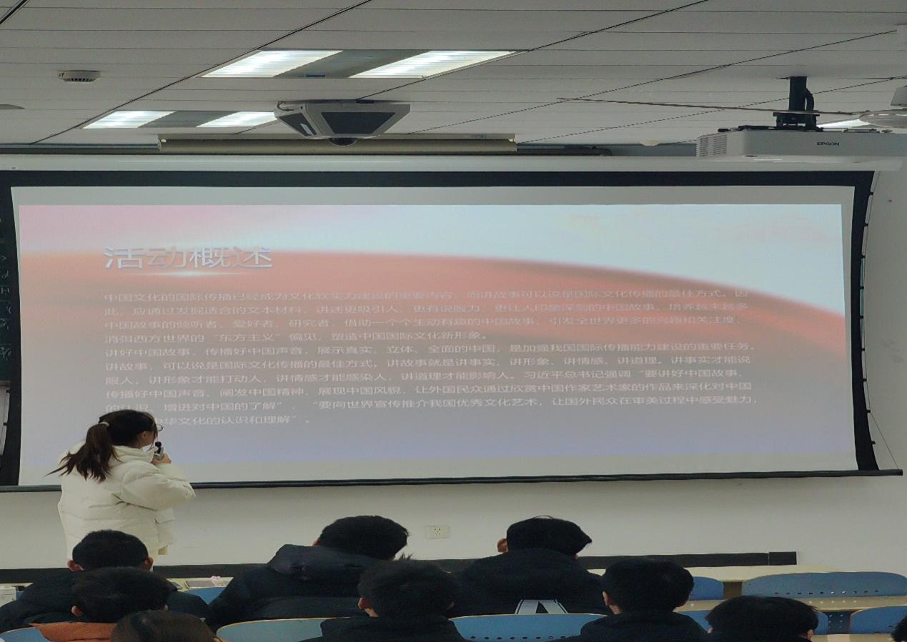 本次团日活动以“讲中国故事”为契机,加强新时代大学生的中华传统文化教育。作为新时代的青年,同学们既要做中国故事的倾听者、爱好者、研究者,也要做中国故事的讲述者,在青春的大好年华讲好中国故事,塑造好中国国际文化形象。
