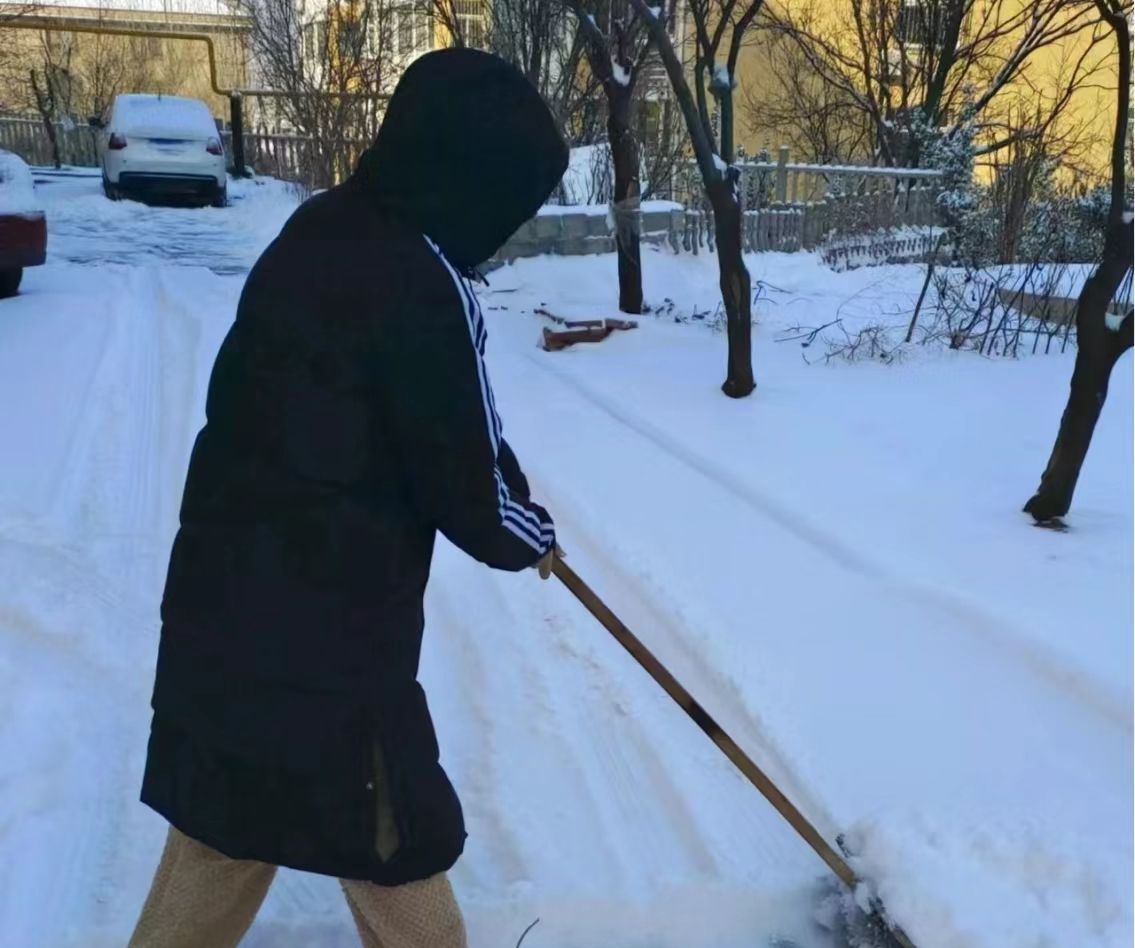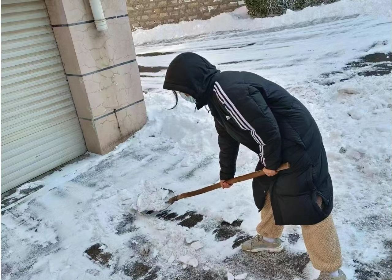冶慧娟于2024年2月1日在新疆乌鲁木齐市第七十五小校外区域开展扫雪除冰实践活动。