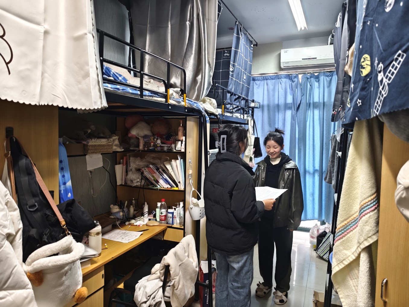 走访过程中,详细了解每位同学的学习生活情况,提醒同学们要互帮互助互爱,在学习上比学赶帮超,好学力行,学有所成,不负韶华;要常态化做好宿舍清洁卫生,坚持每天通风保持室内空气清新;要强化安全意识,提升安全防范能力,严禁使用存放违章电器,严禁私拉电线网线,严禁在宿舍内给电动车电池充电,养成离开宿舍切断电源的习惯,严禁在宿舍抽烟,阳台杂物要及时清理,全力确保宿舍安全。杨政军老师还友情提醒同学们,如果在学习生活中遇到困难和问题,欢迎向辅导员老师及时反映,只要是关乎学生合理合法权益、安全健康等方面的问题,学院都会尽量帮助解决,竭尽全力做好相关服务工作,解除同学们的后顾之忧,助力大家成长成才。