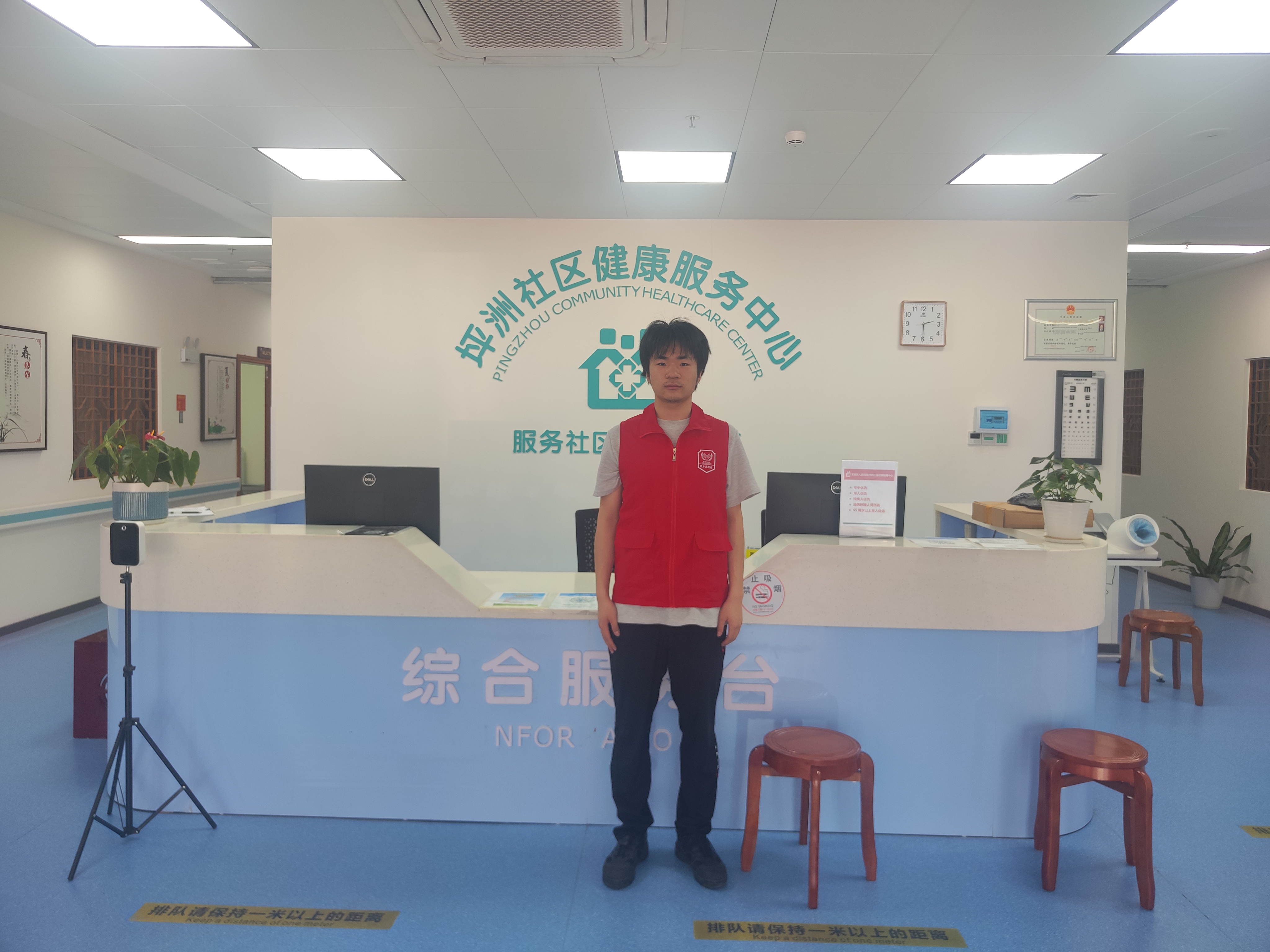 遥感一班尹思源于2024年1月19号赴往深圳市坪洲社区,开展社康医疗志愿服务。