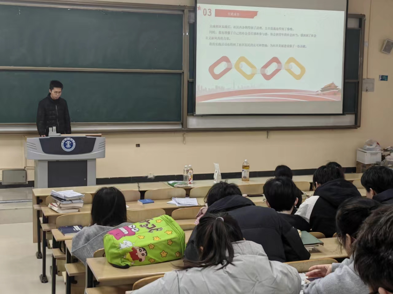 遥感科学与技术22-3班团支部在博四B-101教室开展了以“寒假归来话实践”为主题的团日活动。此次活动由组织委员李毅润策划、团支书李亚楠主持、宣传委员臧峻一进行现场活动的拍摄。