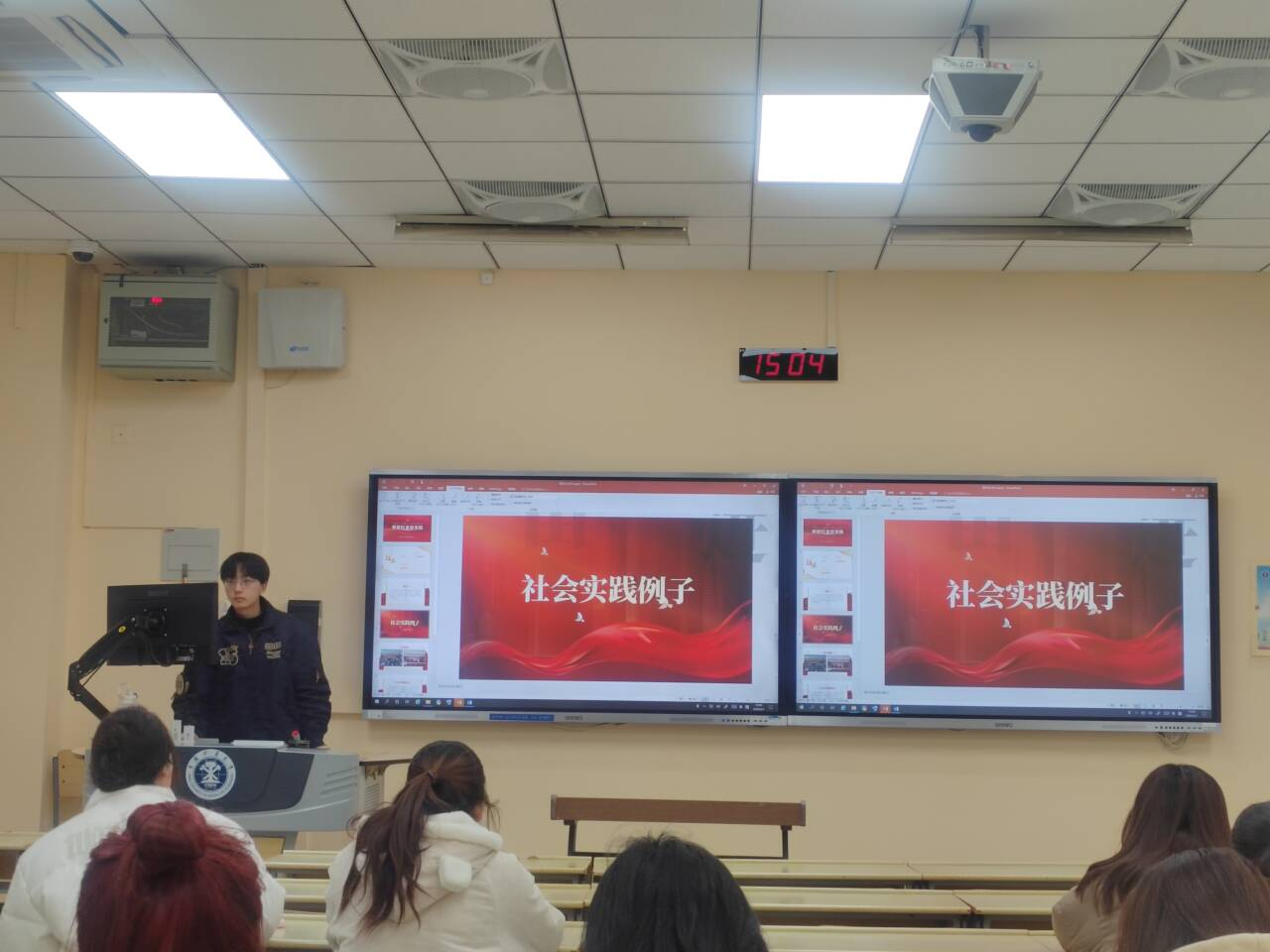 活动伊始,组织委员李鸿宁首先介绍此次活动的概况,团支书胥瀚文通过PPT讲述自己寒假社会实践的相关内容以及申请时的细节,同学们都受到了启发。然后,班长马楚鑫准备了一个有关非遗的社会实践纪录片,让同学们了解到了社会实践的新发展。之后便是黄丽杰的寒假实践分享环节,她对自己的实践过程讲解的绘声绘色,具体且生动。活动的最后,李鸿宁进行总结,提到同学们要用实际行动推动经济社会发展,服务广大人民群众。