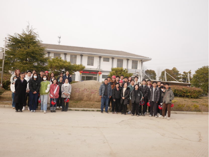 (图为同学老师们与工作人员在企业门口合影留念)