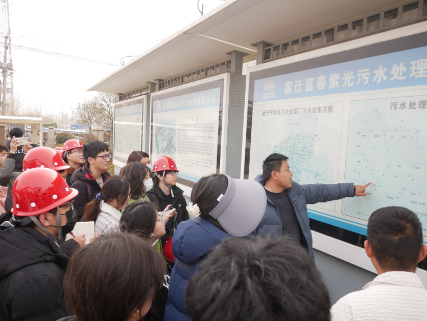 同学们了解到联合水务公司“社会责任-投资者-员工-客户”的经营理念和管理模式,公司采用“预臭氧接触+混合絮凝沉淀+砂滤+后臭氧接触+碳滤”工艺,供水规模达到43万吨/天,供水范围包括宿迁市中心城区、宿城区、宿豫区、洋河新区、市经济开发区、苏州宿迁工业园区、运河宿迁港产业园等区域。通过实习,同学们进一步认识了“自来水是怎样一步步来到人们身边的?”,对自来水处理、供水的原理和水质标准有了更深刻的体会。