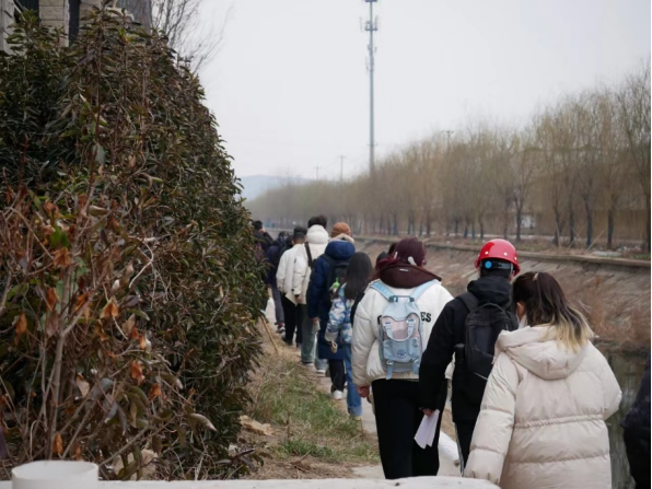 (图为同学们实地参观奎哥欣欣路桥断面保护区)