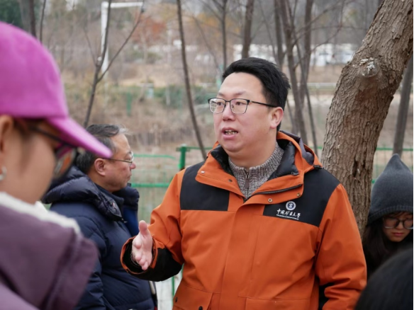 (图为李老师和周老师为同学讲解保护区生态修复工程原理)