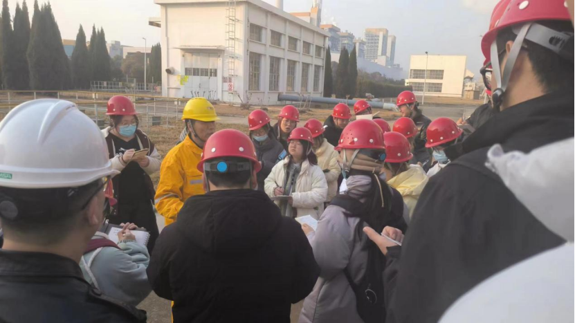 该厂是光大环境在苏北县级市投资建设的第一个垃圾焚烧发电项目,总设计规模为焚烧处理生活垃圾1200t/d,分两期建设,覆盖邳州200万人口的生活垃圾处理。同学们在这里学习了“SNCR+半干法+干法+活性炭+布袋除尘”的组合烟气处理净化工艺,参观了“预处理+厌氧反应器+A/O工艺+超滤+化学软化+RO反渗透”的生活垃圾渗滤液处理系统,并了解了餐厨垃圾处理的工艺流程,对固废处理与处置装置有了更深刻的认知。