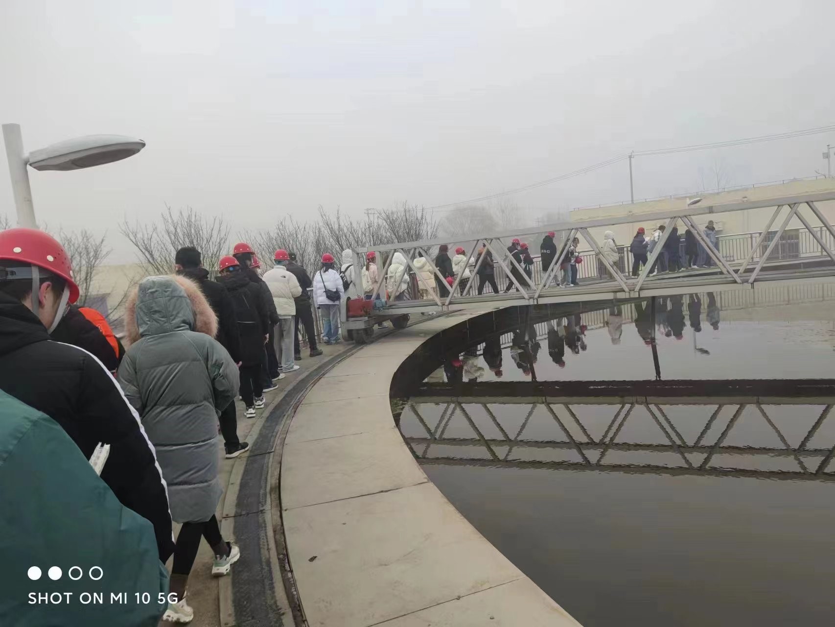 (图为同学们参观工艺构筑物)