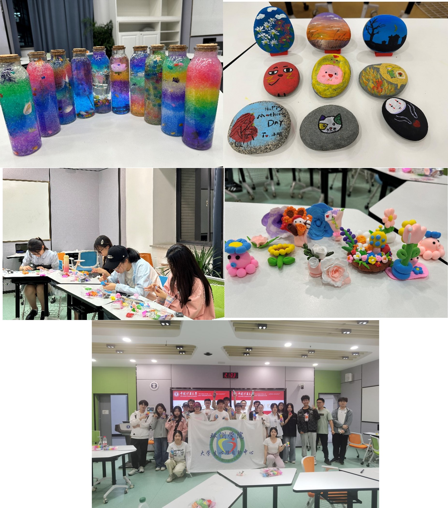 心理健康教育辅导站于5月12日晚19时,在博5楼举办“彩虹心谱之创艺空间”手工制作体验坊活动,鼓励同学们运用色彩进行搭配创作。