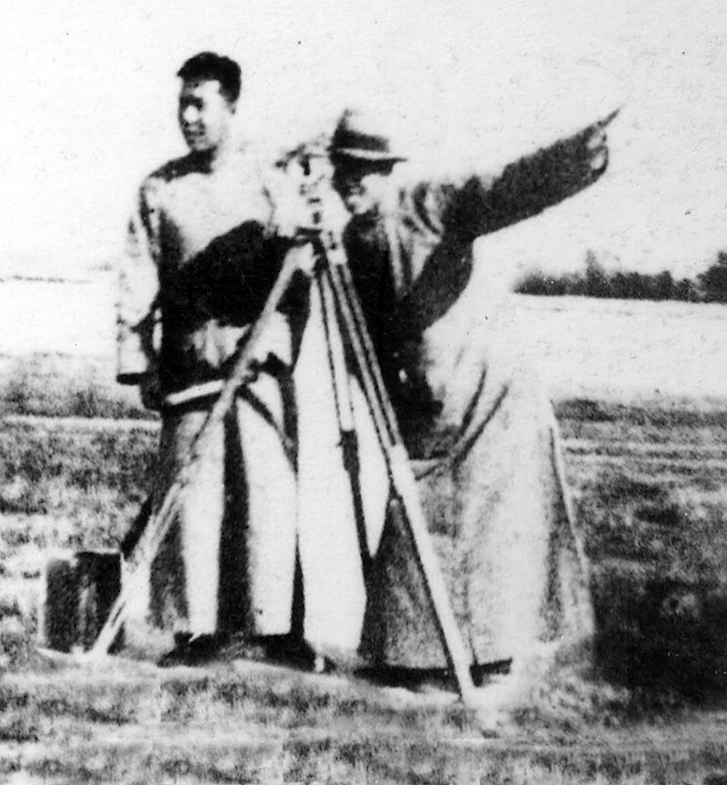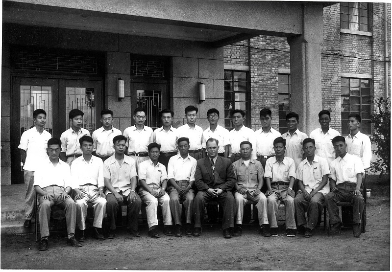 1956年苏联专家O.H.郭尔迪柯与北京矿业学院矿山测量班部分师生合影