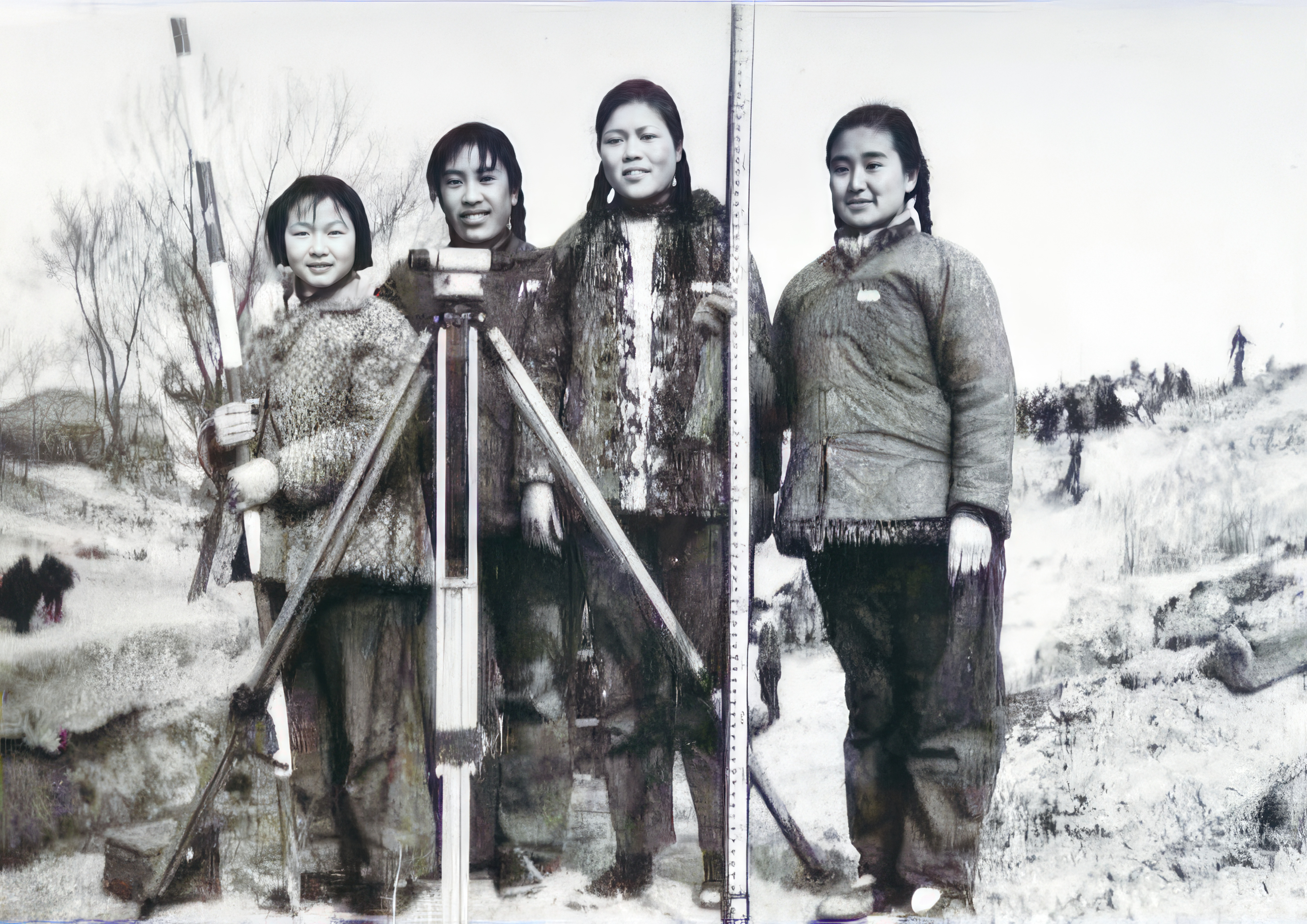 北京矿业学院56级3班女同学在门头沟进行地形测量实习