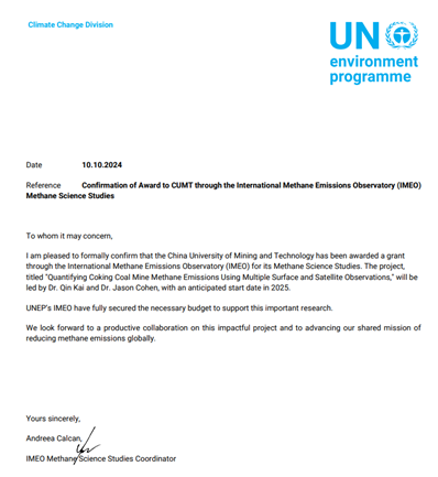 联合国环境规划署(UNEP)甲烷科学研究项目“Quantifying Coking Coal Mine Methane Emissions Using Multiple Surface and Satellite Observations”(利用多种地面和卫星观测数据量化焦化煤矿甲烷排放量)