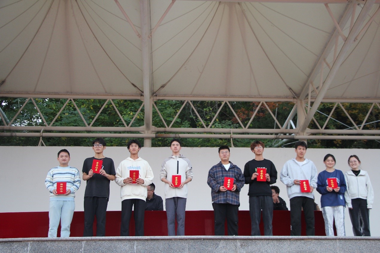 下午16:30,本届运动会顺利闭幕。韩福顺致闭幕词,2024级专职辅导员张莹,预科班辅导员艾科拜尔为获得体育道德风尚奖和团体前八名的班级颁奖。
