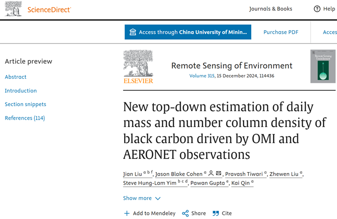 论文题目为“New top-down estimation of daily mass and number column density of black carbon driven by OMI and AERONET observations”,小宝寻花