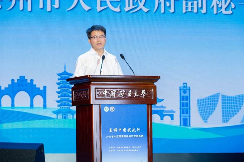 为深入学习宣传贯彻习近平生态文明思想,推动生态文明教育进校园,进一步引导全社会支持和参与生态环境保护,共同建设美丽中国,6月5日,由徐州市生态环境局和我校联合主办的徐州生态环境宣传周启动仪式暨徐州市六五环境日主场活动在我校明徳礼堂举行。我校副校长卞正富、徐州市人民政府副秘书长秦飞、相关部门负责人出席启动仪式。
