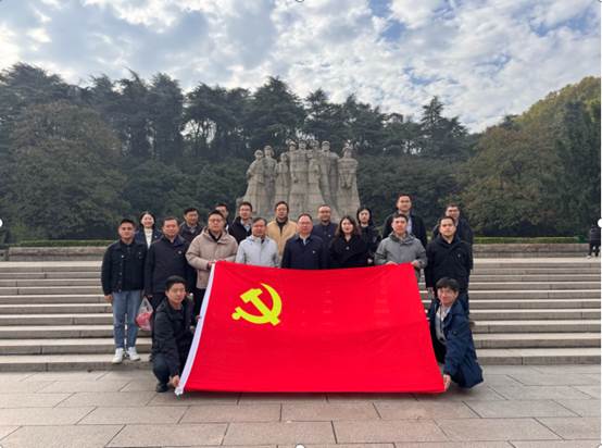 11月23日,研学团队赴雨花台烈士纪念馆开展红色教育。全体党员为革命烈士敬献花篮,刘鹏上前整理缎带,带领研学团队在烈士纪念碑前默哀致敬。孙婷带领全体党员重温入党誓词,坚定初心使命。全体人员依次瞻仰纪念碑,缅怀先烈事迹,表示将以更饱满的热情投入工作。
