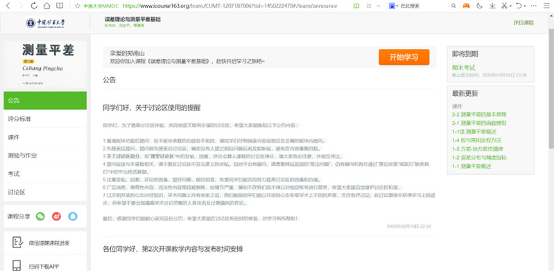 高井祥、张绍良、张书毕教授课程教学团队在中国大学MOOC网提供三门在线课程资源,分别是《数字测量学》、《现代不动产评估》和《误差理论与测量平差基础》。这些课程通过前期建设,在中国大学MOOC(//www.icourse163.org/)网站提供在线教学环境和教学资源共享,战“疫”时期三门课程均对全社会公开开放服务,共克时艰,在线学习者数量累计超过6000名。中国大学MOOC课程平台提供了教学知识点视频、教学幻灯片PPT资料、测验和作业、课程相关知识资讯等线上资源。同时,教学团队还提供了线上讨论、答疑解惑交流等形式多样的教学服务。网络学习资源不仅传播知识,是课程教学的重要资源,同时也积极运用互联网凸显新时代社会科技发展。努力做到“师者,所以传道授业解惑也”,为社会学习者提供 “学习没有界限,越是在困难的时候越要珍惜学习的机会”的优质资源。