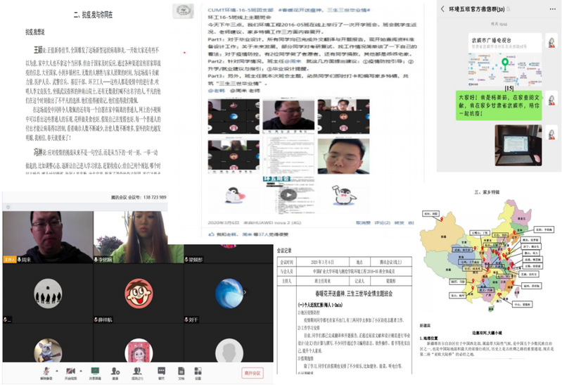 实时教育指导,开好线上班会。疫情就是命令,防控就是责任。周来老师作为班级的带头人扛起了责任,积极落实上级要求,将最新消息和通知以最快时间传达给学生,让学生尽快行动起来尽一份义务。面对疫情,周来老师主动作为、勇于担当,筑起了坚实的家校联动抗疫防线,提升了学生的综合素养,达到了疫情防控与育人工作两不误。他多次召开线上主题班会,了解学生身体和学业情况,制作PPT从课程学习、就业升学、毕业设计等多个维度帮助同学科学规划利用时间;关注学生心理感受和真实需求,加强心理疏导工作,主动化解个别学生不良情绪,坚定必胜信心;及时关注因疫情给学生家庭带来的影响,为学生提供必要帮助,积极解决实际困难。