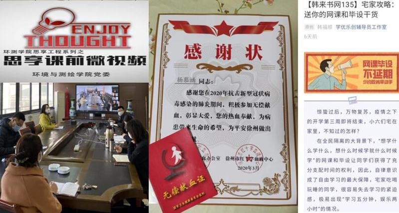 恪守初心、践行使命,筑牢思想意识阵地。3月18日起,学院恢复每周三下午的教职工党员学习和系业务学习研讨制度,认真学习党中央和学校党委疫情防控期间各项指示精神;辅导员班主任组织开展“防控疫情从我做起”网络主题班团会50余场,制作“战役‘云’演讲”抗疫短视频4个;推送“致全院青年的倡议书”、“环测‘宅’家计划”和“防疫期间学生事迹汇总”等系列报道和网文40多篇。