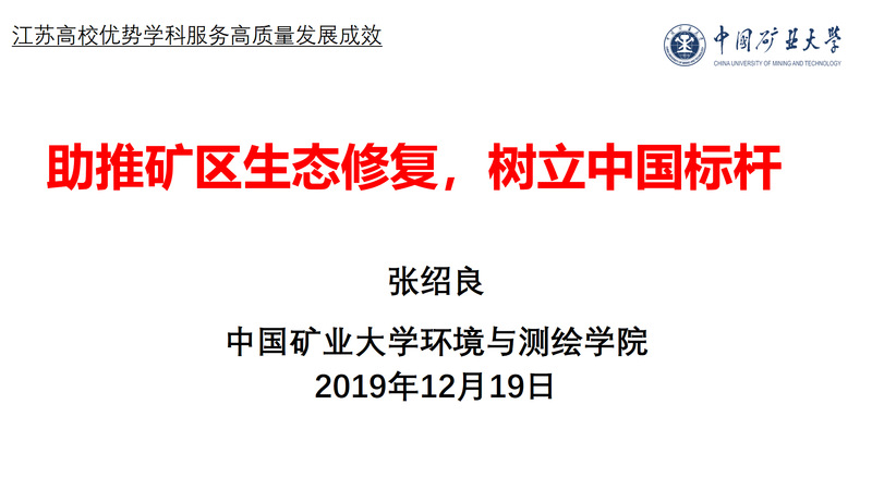 测绘科学与技术学科入选典型案例,特邀参会汇报学科建设成果。执行院长张绍良教授出席会议,并做了 “助推矿区生态修复,树立中国标杆”的报告。