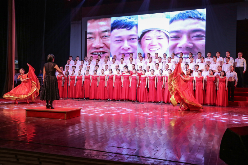 教职工个个精神抖擞,放声歌唱。他们通过歌声表达对祖国的祝福和热爱,“我们唱着东方红,当家作主站起来;我们讲着春天的故事,改革开放富起来;继往开来的领路人,带领我们走进那新时代,高举旗帜开创未来!”振奋人心的歌声在科技馆响起,为现场观众带来耳目一新的合唱表演,引起大家雷鸣般的掌声。