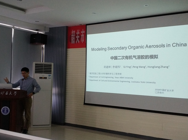 目前的学科情况以及大气环境遥感课题组的最新研究进展。随后,教授对中国二次有机气溶胶的模拟作了详细报告。他首先介绍了异戊二烯中间产物非均相生产SOA过程模拟,并指出,天然排放是SOA的主要来源之一,异戊二烯是天然排放的主要SOA前提物。胡教授又对SVOCs极性、有机气溶胶对水汽吸收的影响进行了模拟,详细说明了排放清单对SOA浓度和来源模拟的影响,并指出VOC清单存在较大不确定性,对SOA来源解析的影响非常大。